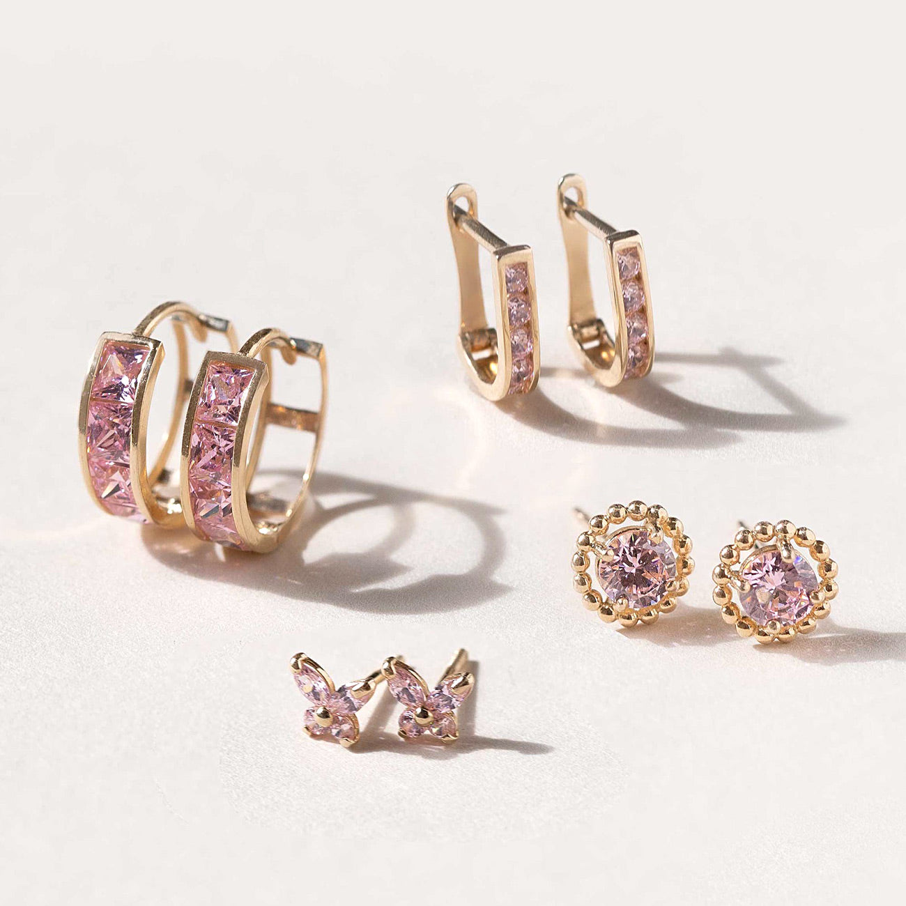Solitaire Beaded Studs Pink Sapphire