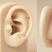 Flat back 14K Gold flor pavé‚ petal-perfect with a sparkly twist. Made for cartilage stacking. Wear on Upper Lobe, Helix, Conch, Tragus, Nostril piercings.