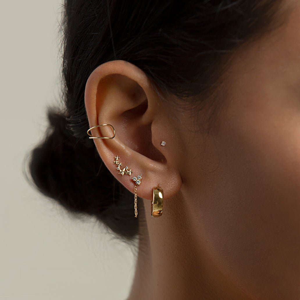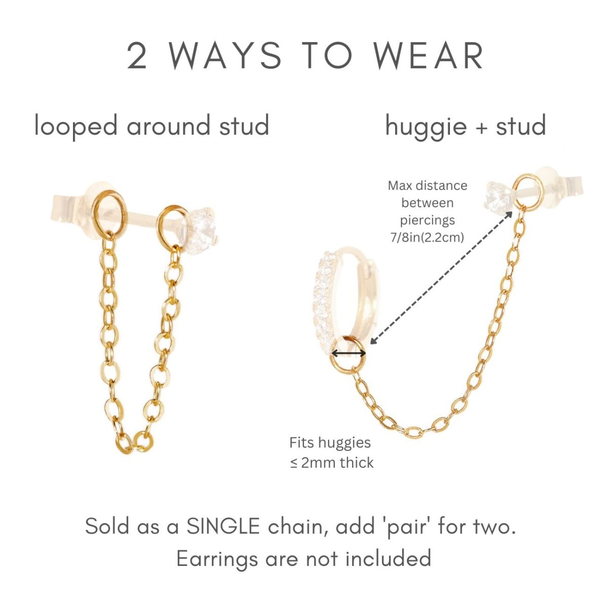 This dainty 14K gold chain add-on for your earrings is worn in 4 different ways. Purchase two for a pair. Best paired with our TINY STUDS | SINGLE EARRING items.