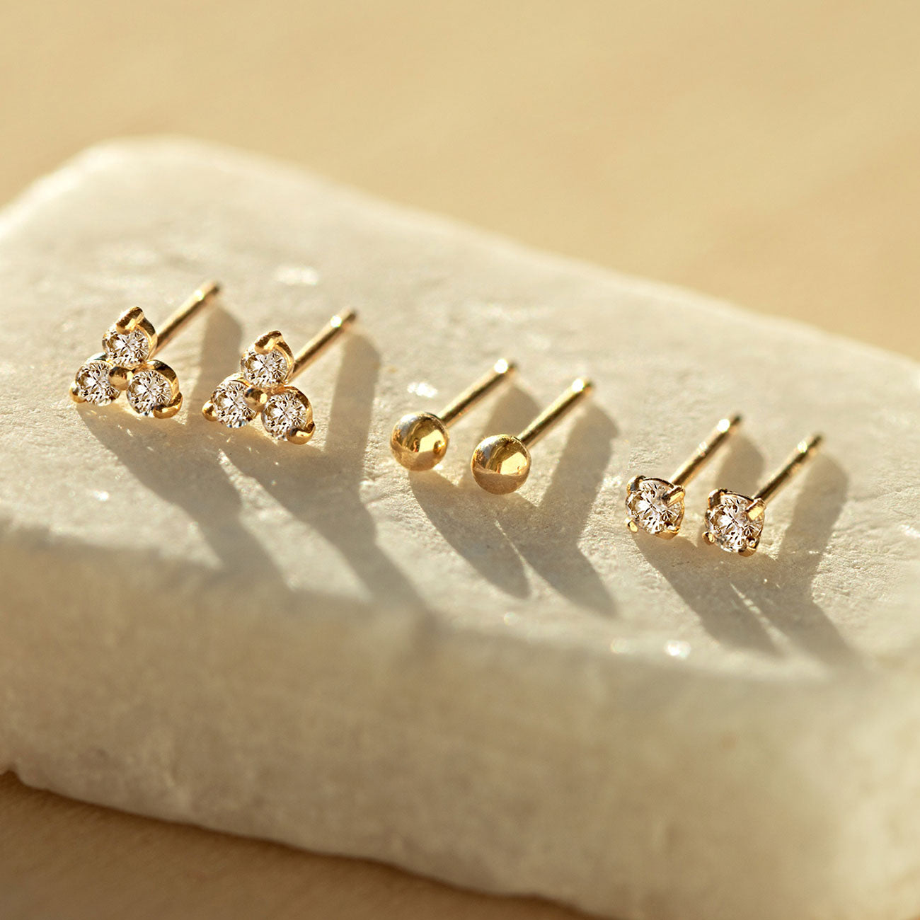Combo of a Diamond and Baguette: Diamond, these 14K Gold stud earrings have the perfect balance of classic and unique!