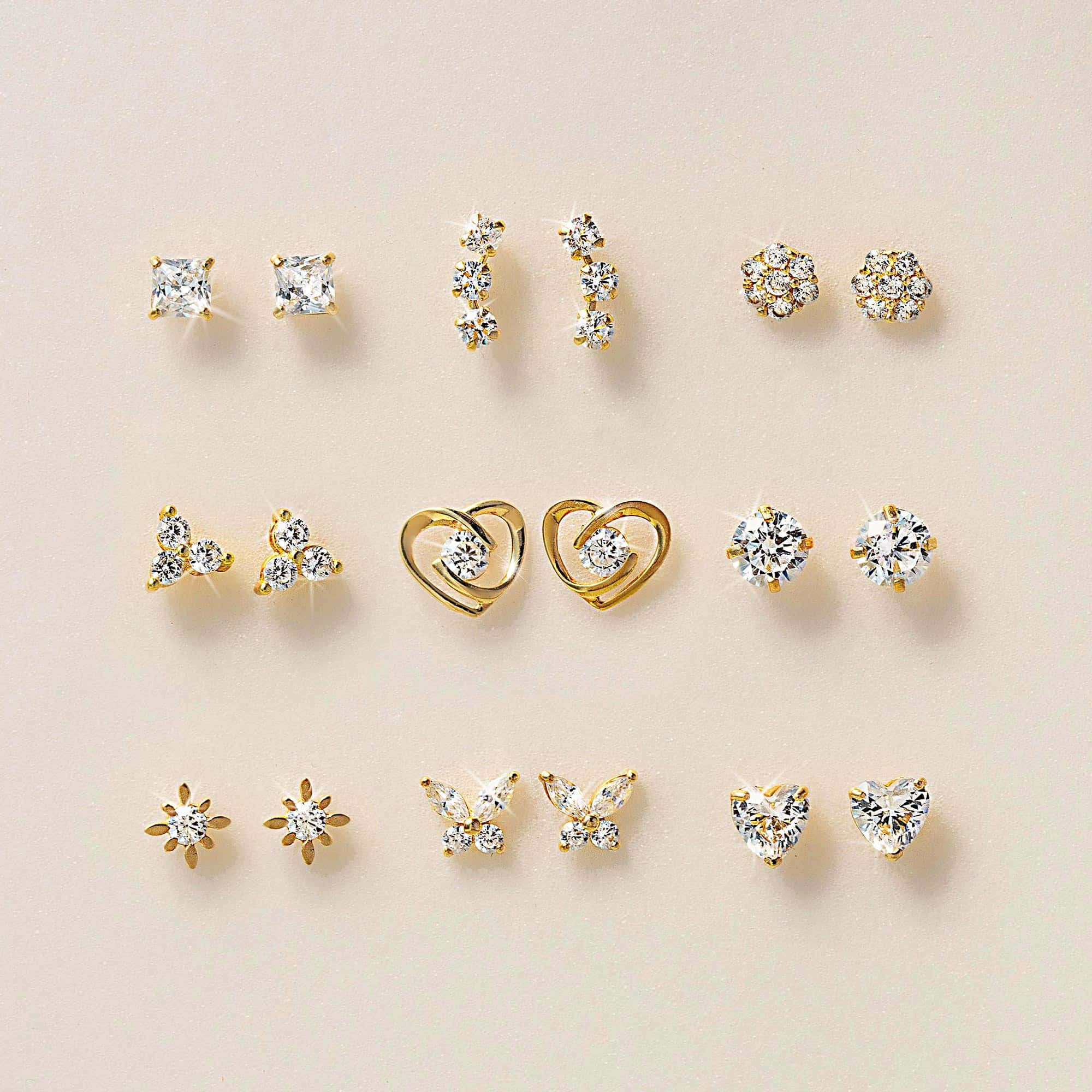 These classic and sparkly studs feature an Asscher cut White Zirconia gemstones set in 14K Gold.