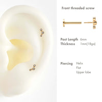 Micro triple bezel curve flatback stud set in 14 Karat Gold. Tiny dots gracefully arched to hug your cartilage. Wear on Upper Lobe, Helix, Tragus piercings.