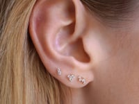 Flat back 14K Gold pavé duo‚ two stones stacked in harmony. Classic design, perfect for everyday wear. Wear on Upper Lobe, Helix, Tragus piercings.