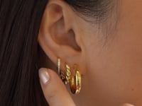 Thick classic Gold hoops that are light-weight and perfect to wear for your everyday look. These Gold hoops are a staple piece that can easily stack with other huggies. The latch feature makes it easy to put on and take off. Great to pair with smaller Huggies.