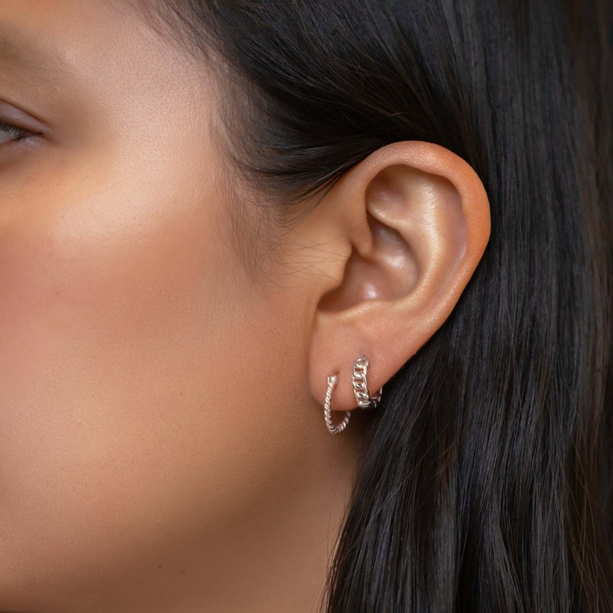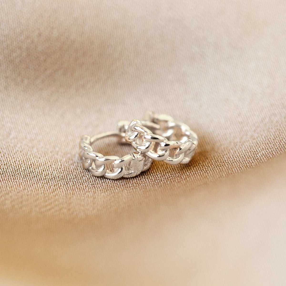 Silver link chain huggies earrings with a bold yet minimal design. Fits all earlobe sizes and adds a modern edge to any ear stack.