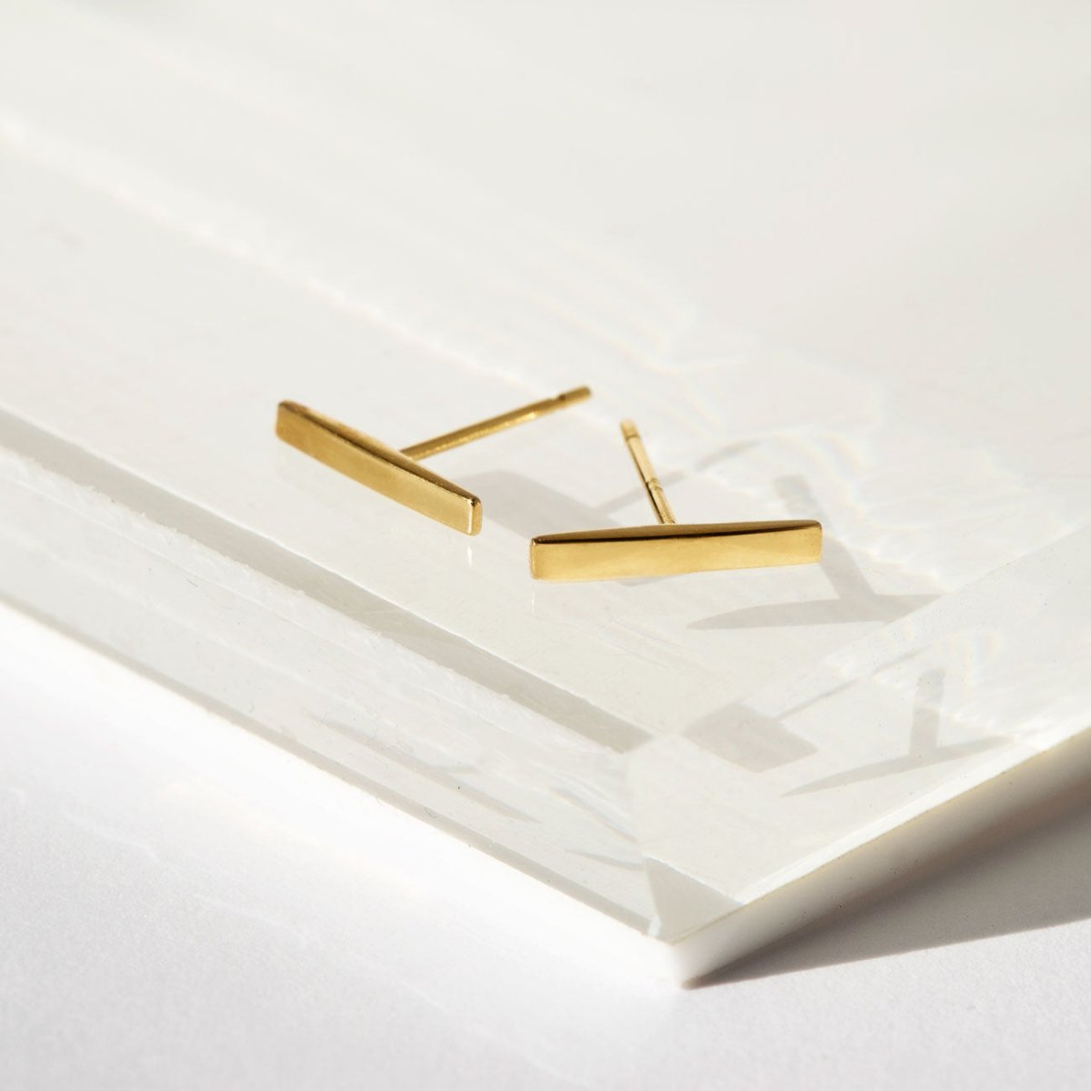 Sleek and minimal gold bar stud earrings crafted in solid 14K. A clean staple designed for effortless everyday wear.