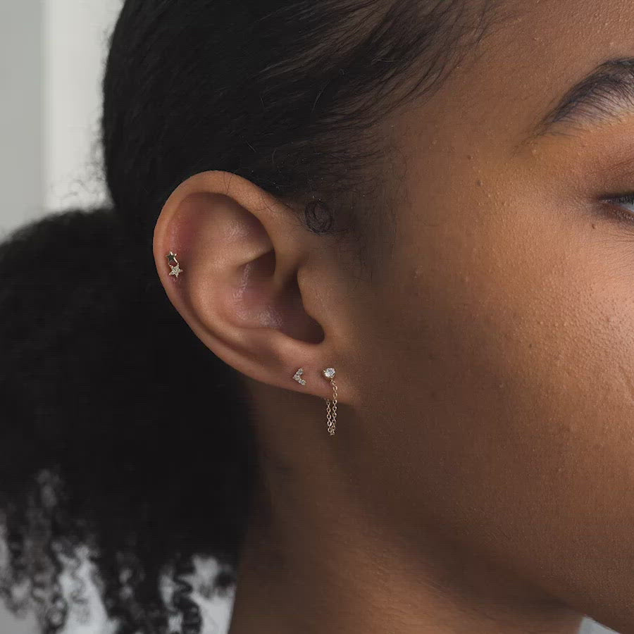 This 14K solid gold diamond chevron stud is the perfect add on to your curated ear. Best worn on second hole or higher. Wear on upper-lobe piercings.