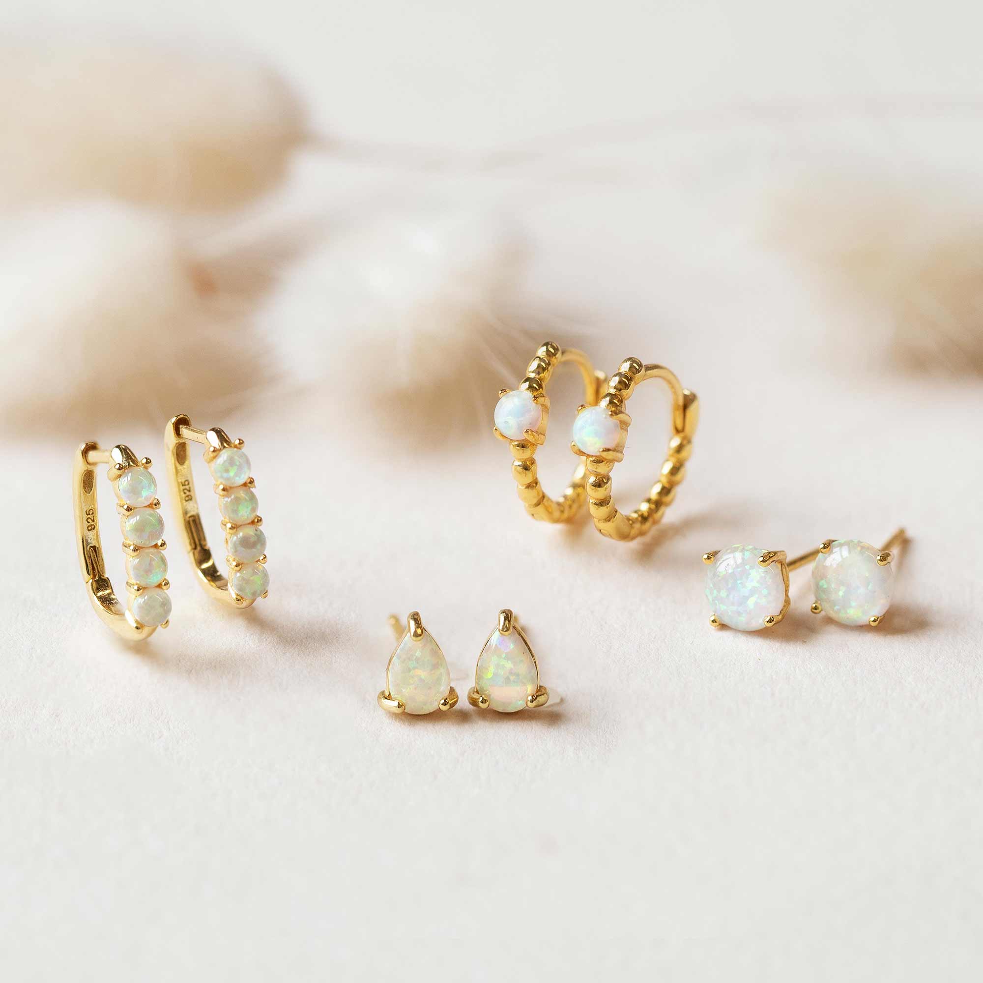 Tiny cabochon opal screw back earrings crafted in 14K gold. Featuring heat and moisture-resistant lab opals for long-lasting shine—perfect for everyday wear.
