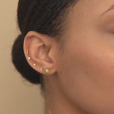 These tiny Gold Triangle Stud Earrings are perfect for second and third holes or your cartilage. Designed to mix and match for multiple piercings.