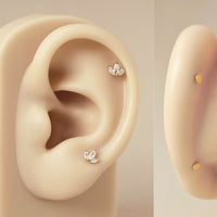 Flat back 14k solid gold stud featuring three marquise-cut stones arranged in a chic cluster. Designed for comfort in cartilage piercings. Wear on Upper Lobe, Helix, Conch piercings.
